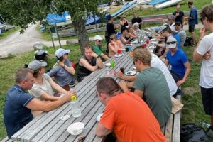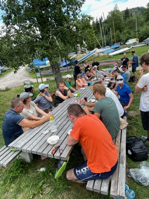 Am HSCF Sommerfest Wochenende gab es viel zu erleben: Am Samstag fanden zahlreiche Einweisungen auf den Vereinsjollen statt und die gesamte Jollenflotte war auf dem Wasser. Zwar ist die angekündigte Mini 12er Wettfahrt zu unserem Bedauern ausgefallen, stattdessen wurde spontan der Kanu-Bahia-Wettbewerb ins Leben gerufen. Am Sonntag gab es eine kurze Theorieeinheit zum Thema Sicherheit beim Jollensegeln und praktische Übungen im Kentern, Aufrichten und im Umgang mit der Rettungsinsel. Außerdem Kaffee und Kuchen für alle am großen Tisch, Grillen und Lagerfeuer im Naturcamp sowie herrliche Wetterkapriolen. Wir haben wie immer alles auf Foto festgehalten, schaut es nach in unserer Bildergalerie.
